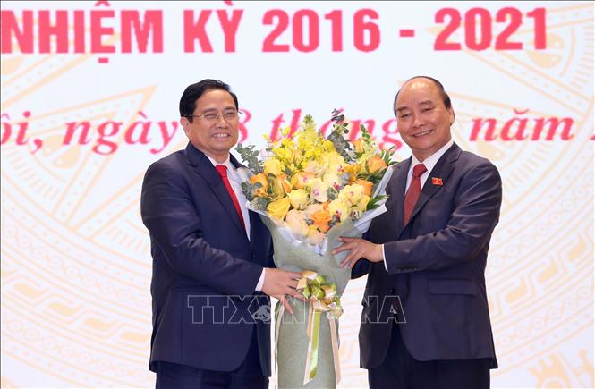 Trân trọng cảm ơn tình cảm của Chủ tịch nước Nguyễn Xuân Phúc, phát biểu tại Lễ bàn giao, Thủ tướng Chính phủ Phạm Minh Chính nêu rõ, trong nhiệm kỳ 2016-2021, mặc dù phải đối mặt với nhiều khó khăn, nhất là dịch bệnh COVID-19, nhưng dưới sự điều hành sâu sát của Chính phủ và đặc biệt là Thủ tướng Chính phủ, các thành viên Chính phủ đã tiếp tục khơi dậy tinh thần yêu nước, khát vọng vươn lên, đạt được những thành tựu kinh tế-xã hội quan trọng, như đánh giá của Tổng Bí thư Nguyễn Phú Trọng: “Đất nước ta chưa bao giờ có được cơ đồ, tiềm lực, vị thế và uy tín quốc tế như ngày nay”.