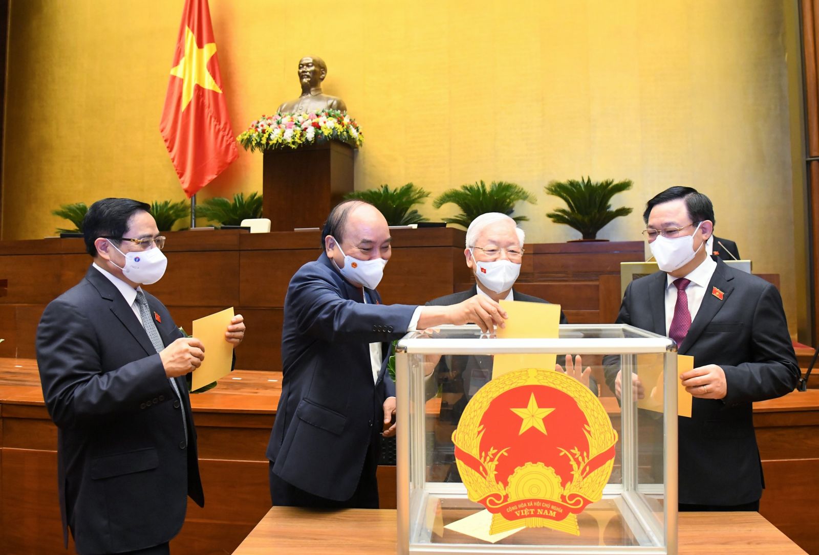 Với 483/483 đại biểu biểu quyết tán thành, sáng 26/7, Quốc hội đã thông qua Nghị quyết bầu đồng chí Nguyễn Xuân Phúc, Chủ tịch nước nhiệm kỳ 2016-2021 (từ tháng 4/2021) giữ chức Chủ tịch nước nhiệm kỳ 2021-2026.