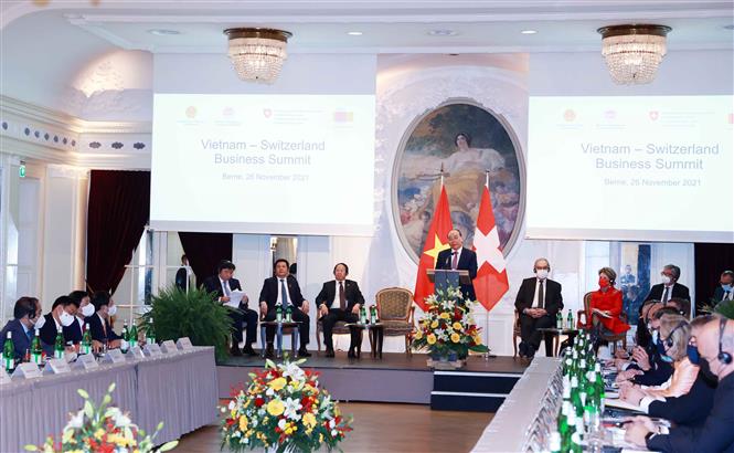 Chủ tịch nước đề nghị cộng đồng doanh nghiệp Thụy Sỹ thúc đẩy đàm phán ký EFTA; các cơ quan hữu quan hai nước cần khuyến khích các dòng chảy thương mại, đầu tư trong bối cảnh mới; tăng cường trao đổi các đoàn doanh nghiệp tìm hiểu thị trường, cơ hội đầu tư và kết nối kinh doanh. Chủ tịch nước kêu gọi các doanh nghiệp Thụy Sỹ ủng hộ để Chính phủ Thụy Sỹ hỗ trợ cung ứng vaccine phòng COVID-19 cho Việt Nam thông qua cơ chế COVAX, đồng thời cung cấp các thiết bị y tế, chuyển giao công nghệ nghiên cứu và sản xuất thuốc điều trị COVID-19.