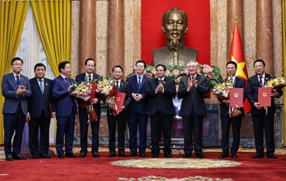 Thừa ủy quyền của Chủ tịch nước, Phó Chủ nhiệm Văn phòng Chủ tịch nước Phạm Thanh Hà đã công bố quyết định của Chủ tịch nước bổ nhiệm chức vụ Phó Thủ tướng Chính phủ đối với các đồng chí Mai Văn Chính và Nguyễn Chí Dũng; Bộ trưởng Bộ Xây dựng đối với đồng chí Trần Hồng Minh; Bộ trưởng Bộ Khoa học và Công nghệ đối với đồng chí Nguyễn Mạnh Hùng; Bộ trưởng Bộ Nông nghiệp và Môi trường đối với đồng chí Đỗ Đức Duy; và Bộ trưởng Bộ Dân tộc và Tôn giáo đối với đồng chí Đào Ngọc Dung.