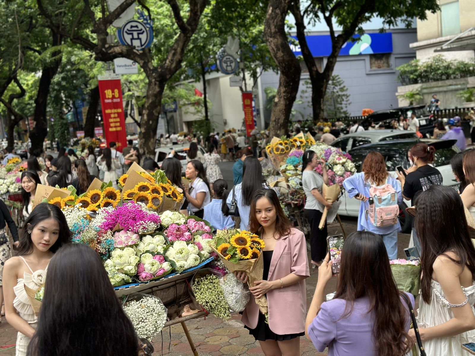 Rồi điện thoại thông minh ra đời. Những xe hoa lại càng... đắt khách, là khách... chụp ảnh. Có nhiều bạn hóa thân làm cô gái bán hoa, có bạn đứng bên cạnh ngoẹo đầu chu mỏ chụp, kệ sự... sốt ruột của người bán, lo bán không hết thì lõm, thì không thể ăn hoa trừ bữa (Hà Nội có món cơm nắm rất thú vị mà mỗi lần ra tôi đều phải ăn bằng được, còn mua về nữa, là hôm ấy cô bán cơm nắm nói, còn từng này bán không hết em mang về cả nhà ăn dù hôm qua cũng mới ăn, thế là tôi mua hết)...