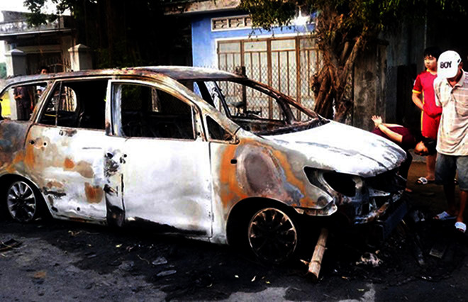 Trong khi hỗn chiến, một số thanh niên la hét đập vỡ kính xe ô tô, rồi dùng đao, kiếm đâm lao vào chém loạn xạ và ném "bom xăng", châm lửa đốt xe Innova. Đám cháy đỏ rực tạo nên cột lửa cao hơn 4m khiến ô tô phát nổ. Sau đó, 2 nhóm thanh niên trốn khỏi hiện trường.