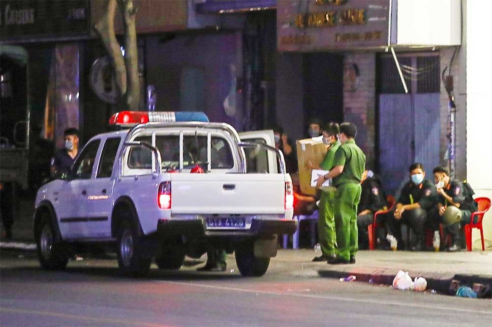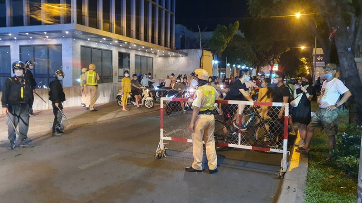 Đầu đường Nguyễn Thông - Ngô Thời Nhiệm và đầu đường Nguyễn Thông, từ đường Điện Biên Phủ bị phong tỏa. Hàng chục Cảnh sát cơ động cùng CSGT, Công an quận 3, Công an phường đứng canh gác.