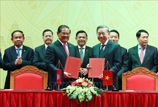 Kết thúc Hội nghị, Bộ trưởng Tô Lâm và Phó Thủ tướng, Bộ trưởng Samdech Krolahom Sar Kheng đã ký Kế hoạch hợp tác năm 2023 giữa Bộ Công an Việt Nam và Bộ Nội vụ Vương quốc Campuchia.