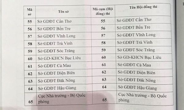Bên cạnh đó, tại hội nghị tập huấn nghiệp vụ tổ chức kỳ thi THPT Quốc gia và công tác tuyển sinh sinh đại học, cao đẳng, trung cấp nhóm ngành đào tạo giáo viên tại TP.Hồ Chí Minh cho đại diện sở GD&ĐT 63 tỉnh thành và các trường đại học trong cả nước, bộ GD&ĐT đã công bố 65 cụm thi THPT Quốc gia 2019.