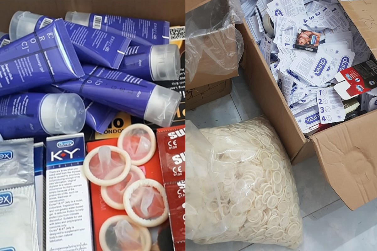 Tiến hành kiểm tra cơ sở, đội Quản lý thị trường số 12 phát hiện hơn 163.000 sản phẩm bao cao su các loại mang thương hiệu Durex, OK, Inova, Sure… Trên bao bì ghi nơi xuất xứ là Malaysia, Thái Lan. Số bao cao su này đang chờ được đưa đi tiêu thụ.