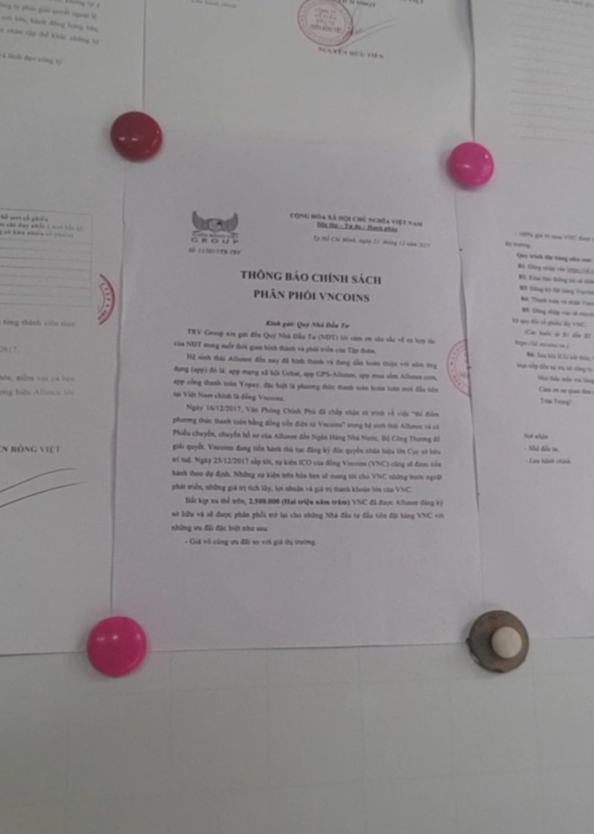 Như PhapluatNet đã đăng tải trong bài viết "Công ty Thiên Rồng Việt: biến tướng kinh doanh đa cấp tiền ảo?" phản ánh về việc Công ty CP đầu tư Thiên Rồng Việt (gọi tắt là TRV, có trụ sở tại 16 Trần Doãn Khanh, P.Đa Kao, Q.1, TP.HCM) hoạt động huy động vốn trái phép bằng việc kinh doanh đồng tiền ảo VNCoins.