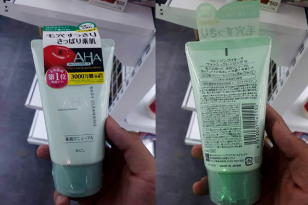 Trong vai khách hàng muốn tìm sản phẩm sữa rửa mặt, phóng viên được nhân viên tư vấn sản phẩm giới thiệu sữa rửa mặt AHA Wash Cleansing Nhật Bản được chiết xuất từ trái cây. Theo quan sát của PV, mặt sau sản phẩm được in toàn bộ bằng chữ Nhật Bản, không có tem phụ bằng tiếng Việt khiến khách hàng khó có thể biết được cách sử dụng sao cho chính xác.