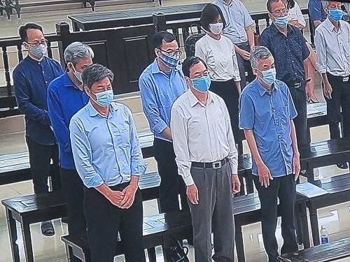 9/10 bị cáo đã có mặt gồm: Cựu Bộ trưởng bộ Công Thương Vũ Huy Hoàng (SN 1953), Phan Chí Dũng (SN 1957, nguyên Vụ trưởng vụ Công nghiệp nhẹ, bộ Công Thương), Lâm Nguyên Khôi (SN 1955, nguyên Phó Giám đốc sở Kế hoạch và Đầu tư TP.HCM), Đào Anh Kiệt (SN 1957, nguyên Giám đốc sở Tài nguyên và Môi trường TP.HCM), Lê Văn Thanh (SN 1962, nguyên Phó Chánh Văn phòng UBND TP.HCM), Lê Quang Minh (SN 1957, nguyên Trưởng phòng Phát triển hạ tầng, sở Kế hoạch và Đầu tư TP.HCM), Nguyễn Thanh Chương (SN 1974, nguyên Trưởng phòng Đô thị, Văn phòng UBND TP.HCM), Trương Văn Út (SN 1970, nguyên Phó Trưởng phòng Quản lý đất, sở Tài nguyên và Môi trường TP.HCM), Nguyễn Lan Châu (SN 1975, nguyên chuyên viên phòng Quản lý đất, sở Tài nguyên và Môi trường TP.HCM).