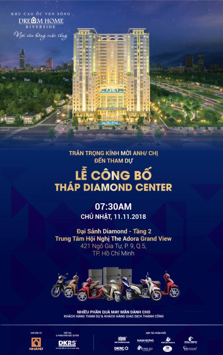 Tìm hiểu thông tin về Dự án Dream Home Riverside, được biết dự án do Công ty CP Nhà Mơ làm chủ đầu tư, được tiếp thị phân phối độc quyền bởi Công ty CP dịch vụ bất động sản Danh Khôi (DKRS). Ngày 11/11, CĐT đã phối hợp cùng đơn vị phân phối chính thức tổ chức lễ công bố, chào bán đối với tòa tháp Diamond Center bao gồm 640 căn hộ tại một trung tâm sự kiện nằm trên địa bàn quận 5.