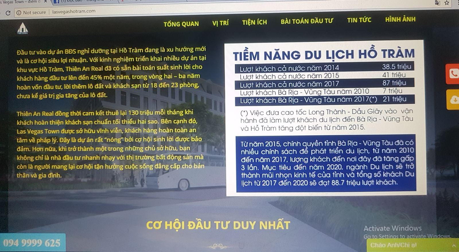 Để làm rõ thông tin về tính pháp lý của dự án Lasvegas Town Hotel do Thiên An Real làm chủ đầu tư, phân phối. Trao đổi với PV PhapluatNet, đại diện phòng quy hoạch kiến trúc thuộc Sở Xây dựng tỉnh Bà Rịa – Vũng Tàu cho hay: “Đối với dự án Lasvegas Hotel Town chưa có liên hệ nên thủ tục về hồ sơ pháp lý là không có gì cả. Dự án này trước đây có tên khác là Khu du lịch Trường Phát.”