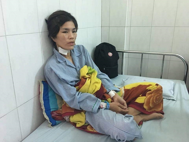 Ngay sau đó, các bác sĩ tại khoa Ngoại của bệnh viện đã tiến hành phẫu thuật, khâu lại các vết thương cho chị Hoa.