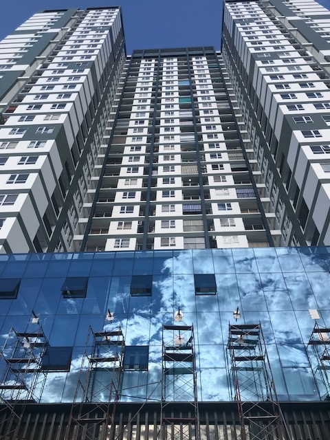 Có mặt tại chung cư này, PV đã tận mắt chứng kiến cảnh thợ đang hì hục làm việc, tiếng khoan tường chát chúa, máy móc cùng nguyên vật liệu xếp đống ngổn ngang. Chưa hết, để tìm đường lên xuống thang máy các căn hộ, PV đã phải đi vào giữa một công trường với vôi vữa cùng xi măng bụi bặm rất mất vệ sinh. Phía bên trong thang máy này đã đi vào hoạt động được một thời gian nhưng cũng chưa thấy có tem kiểm định an toàn.