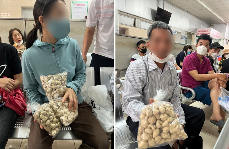 Cùng ngày, trước cửa phòng nội soi dạ dày, ông D. cũng bị đối tượng dẫn dắt giống trường hợp chị A. Theo ông D., chỗ bán thuốc không cố định, chỉ có 1-2 người bán hàng cùng chiếc xe máy “màu đỏ” xách túi đen đựng thuốc bên trong.