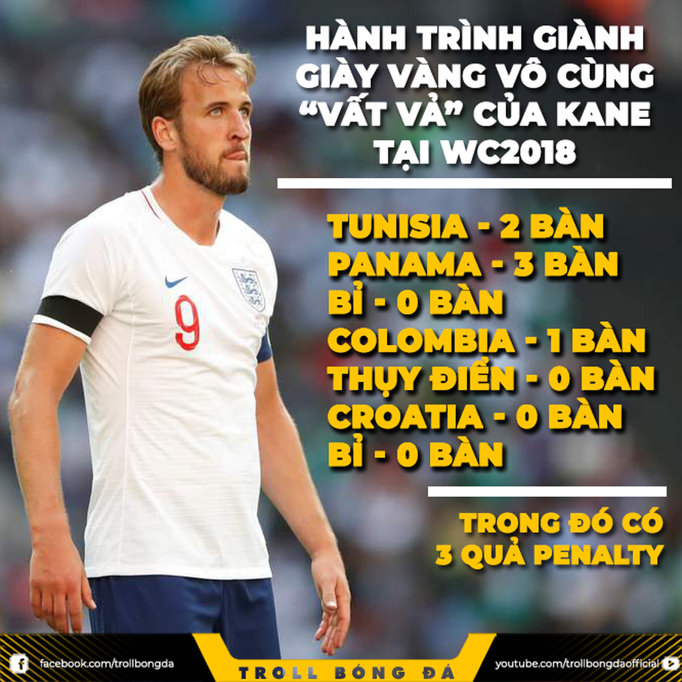 Harry Kane được cho là "Chiếc giày Vàng tệ nhất lịch sử", nhưng dù sao thì Kane cũng nhận giải rồi, không phục thì cũng chịu thôi - Ảnh: Troll Bóng Đá