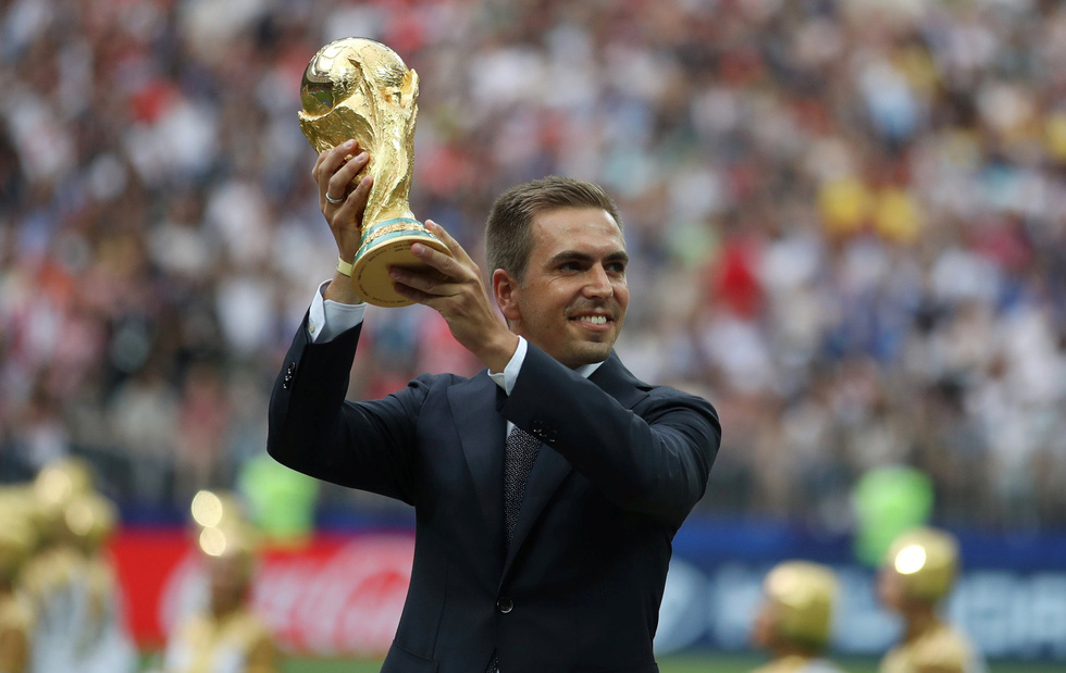 Khoảnh khắc cựu đội trưởng tuyển Đức Philipp Lahm bước tới trao lại cúp vàng cho Pháp hẳn sẽ mang lại nhiều cảm xúc khó tả cho những người yêu mến đội bóng này - Ảnh: Reuters