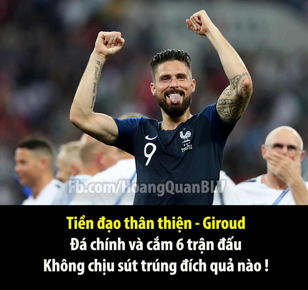 Nhà tân vô địch cũng góp mặt trong hạng mục trao giải của cư dân mạng. Sẽ thật thiếu nếu không nhắc tới Giroud, tiền đạo kém may mắn của đội tuyển Pháp ghi người ghi bàn luôn không phải là anh. Ngay cả hậu vệ, trung vệ của Pháp cũng đã ghi bàn thì việc Giroud được trao giải "Tiền đạo thân thiện" nhất mùa giải là hoàn toàn hợp lý.