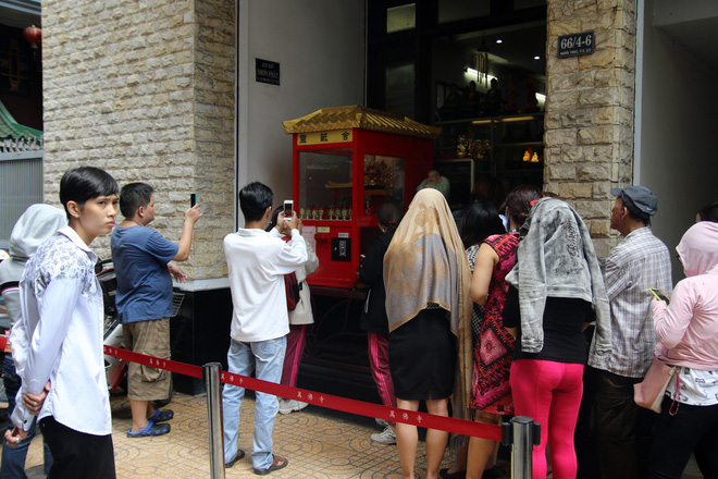 Cụ thể, ngôi chùa này nằm khuất trong khu phố vàng bạc nổi tiếng tại quận 5, TP.HCM đang có chiếc máy để cho bá tánh, phật tử, người lễ chùa thập phương xin... xăm. Chiếc máy này lấy xăm hoàn toàn ngẫu nhiên, khiến người nhiều người thích thú trong dịp lễ chùa đầu năm.