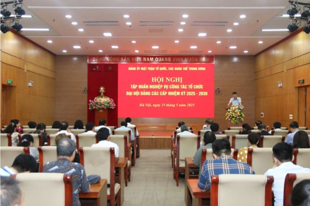Theo chương trình, tại hội nghị, đồng chí Trần Việt Hùng - Phó Vụ trưởng Vụ Cán bộ, Ban Tổ chức Trung ương quán triệt nội dung Chỉ thị số 45-CT/TW, ngày 14/4/2025 của Bộ Chính trị về đại hội đảng bộ các cấp tiến tới Đại hội đại biểu toàn quốc lần thứ XIV của Đảng; một số điểm cần lưu ý đối với Đảng bộ Mặt trận Tổ quốc, các đoàn thể Trung ương trong thực hiện Chỉ thị 45 và một số kinh nghiệm về nghiệp vụ công tác tổ chức đại hội đảng các cấp.