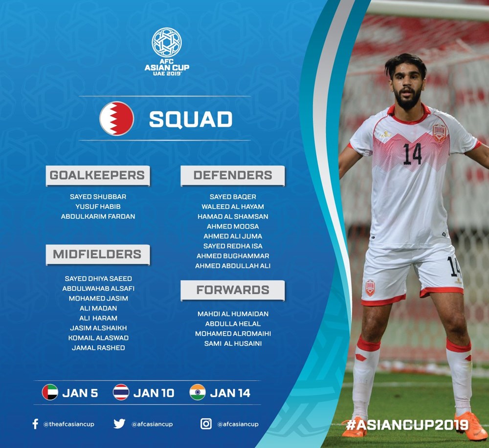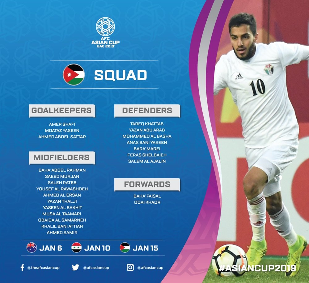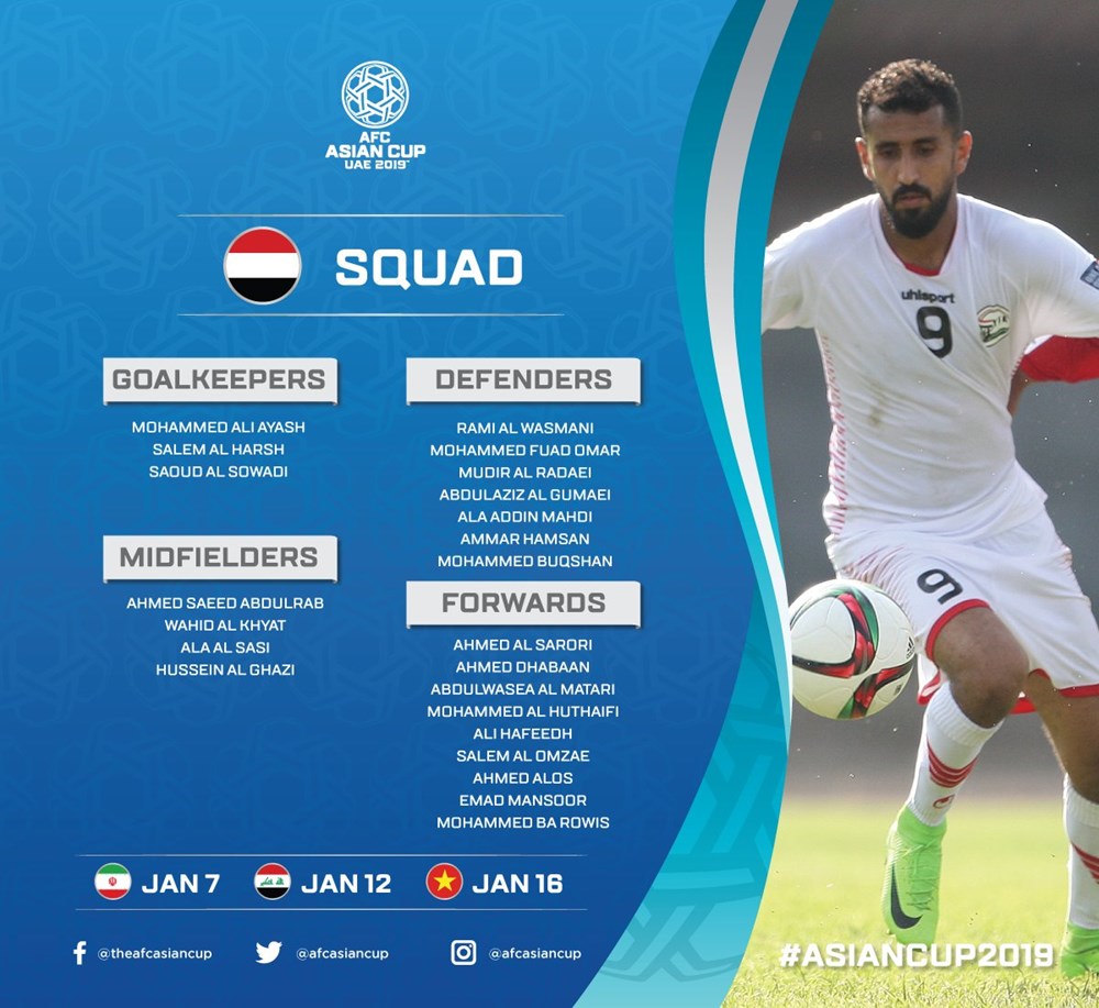 AFC đã đăng tải danh sách chi tiết cầu thủ của 24 đội tuyển tham dự vòng chung kết Asian Cup 2019. Tuy nhiên, các đội vẫn được phép thay đổi 1 cầu thủ trước khi giải đấu diễn ra.