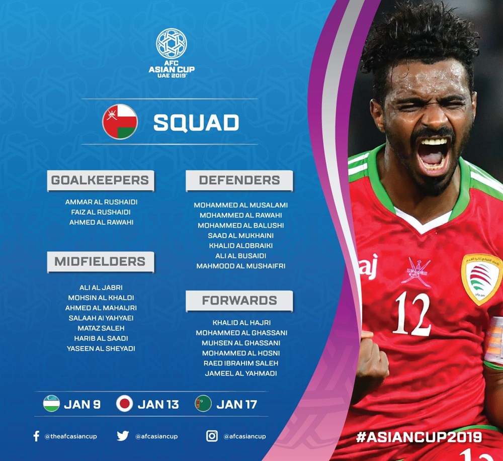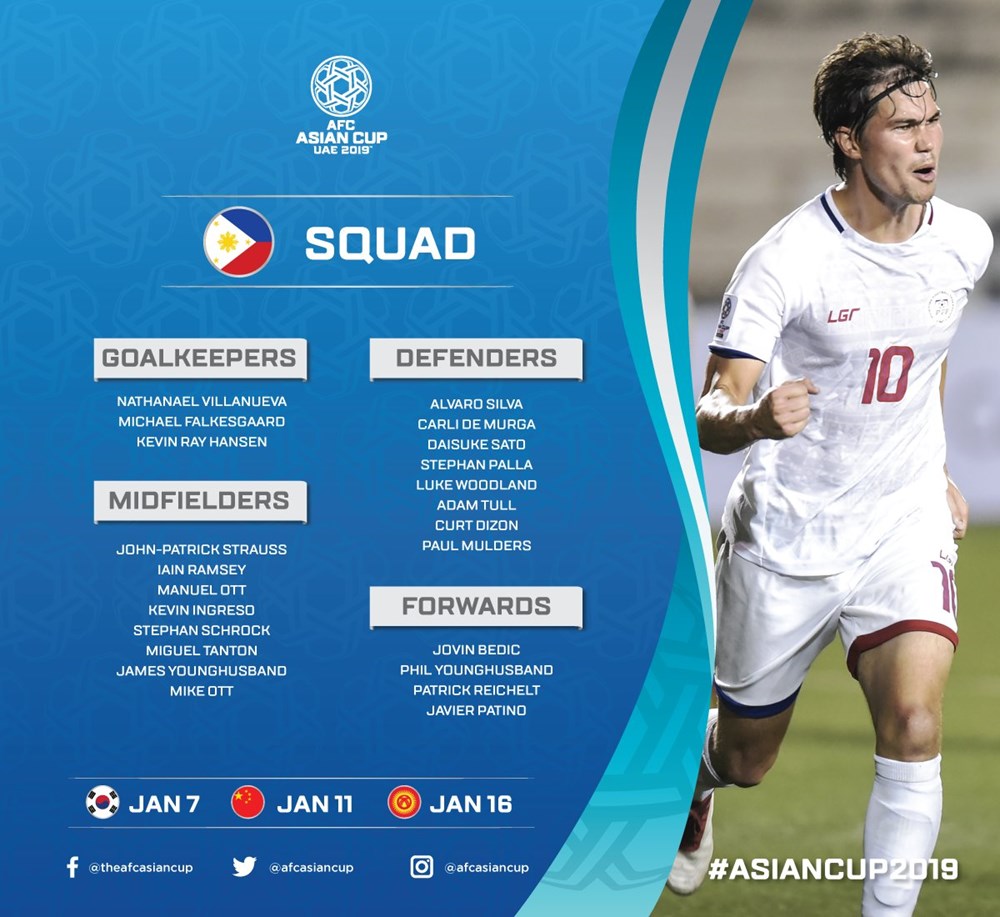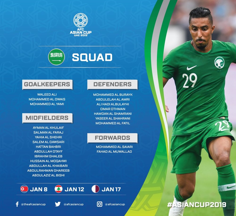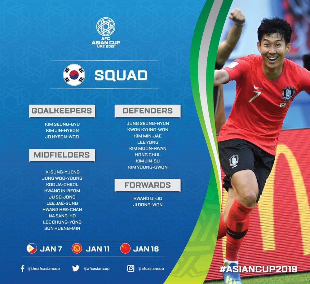 AFC đã đăng tải danh sách chi tiết cầu thủ của 24 đội tuyển tham dự vòng chung kết Asian Cup 2019. Tuy nhiên, các đội vẫn được phép thay đổi 1 cầu thủ trước khi giải đấu diễn ra.