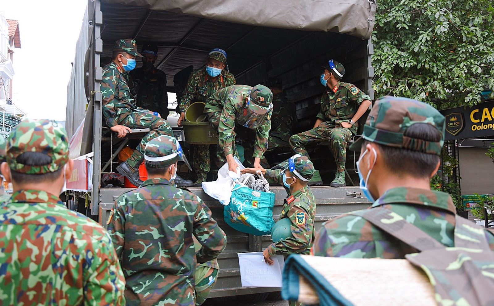 Hiện nay, tất cả các quận, huyện và thành phố Thủ Đức đã phân công nhiệm vụ cụ thể cho lực lượng quân đội tham gia hỗ trợ công tác chống dịch của địa phương. Chính vì vậy, tại những chốt kiểm soát, trên đường, siêu thị, chung cư, khu dân cư... người dân dễ dàng bắt gặp hình ảnh những chiến sĩ đi phát quà an sinh hay đi giao hàng, khám bệnh cho F0...