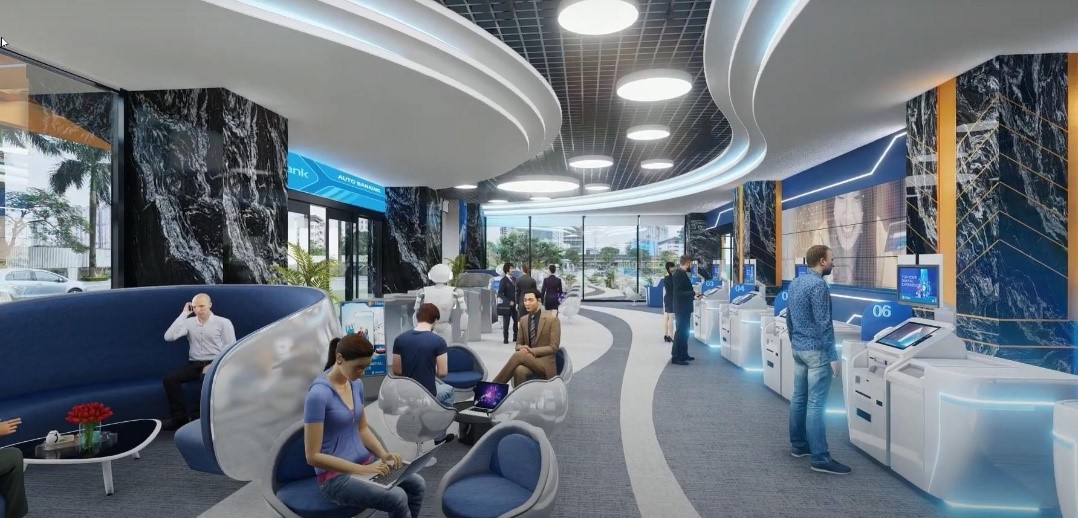 KS E-Branches (Văn phòng giao dịch kỷ nguyên mới một chạm - Không gian trải nghiệm số toàn diện): Sử dụng nền tảng số, KS Bank sẽ mang đến một phòng giao dịch kiểu mẫu đạt các tiêu chuẩn phục vụ 5 sao, nơi khách hàng được đón tiếp với không gian như các phòng chờ cao cấp, các thế hệ máy STM tối tân…