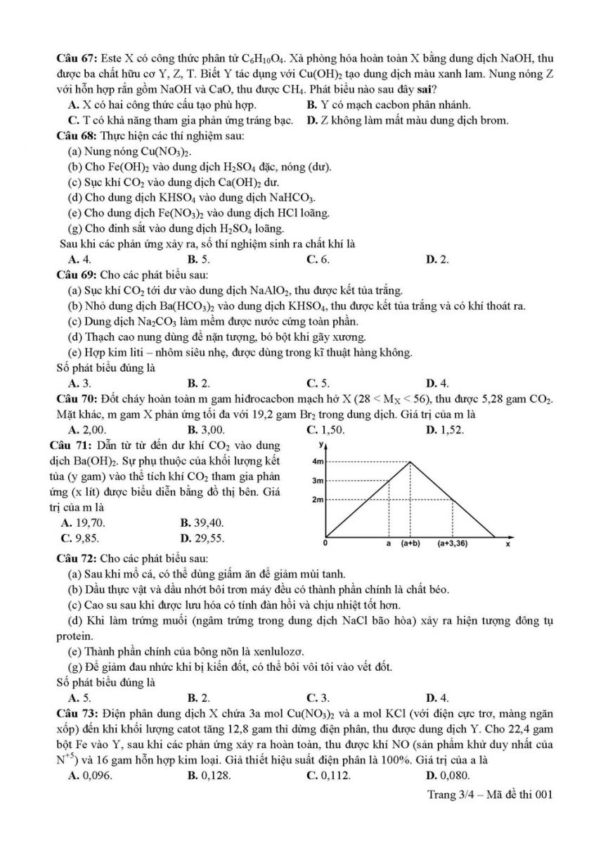 Đề thi tham khảo môn Hoá thi THPT Quốc gia năm 2019: