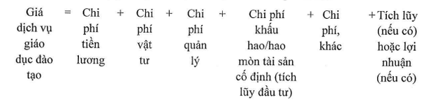 Theo dự thảo, giá dịch vụ giáo dục, đào tạo là toàn bộ các khoản chi phí thực tế hợp lý phát sinh để hoàn thành việc giáo dục đào tạo cho người học đạt được các tiêu chí, tiêu chuẩn do cơ quan có thẩm quyền ban hành bao gồm chi phí tiền lương, chi phí vật tư, chi phí quản lý, chi phí khấu hao hao mòn tài sản cố định (tích lũy đầu tư) và các chi phí khác và tích lũy (nếu có) hoặc lợi nhuận (nếu có).