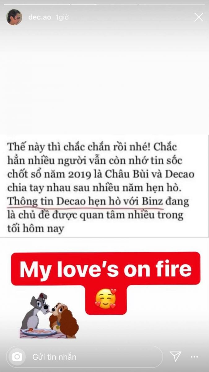 Chưa dừng lại, Decao còn đăng thêm 1 story nữa, với nội dung: "Em cặp thằng nào, tôi tán thằng đó", như 1 lời "tuyên chiến" đến Châu Bùi.