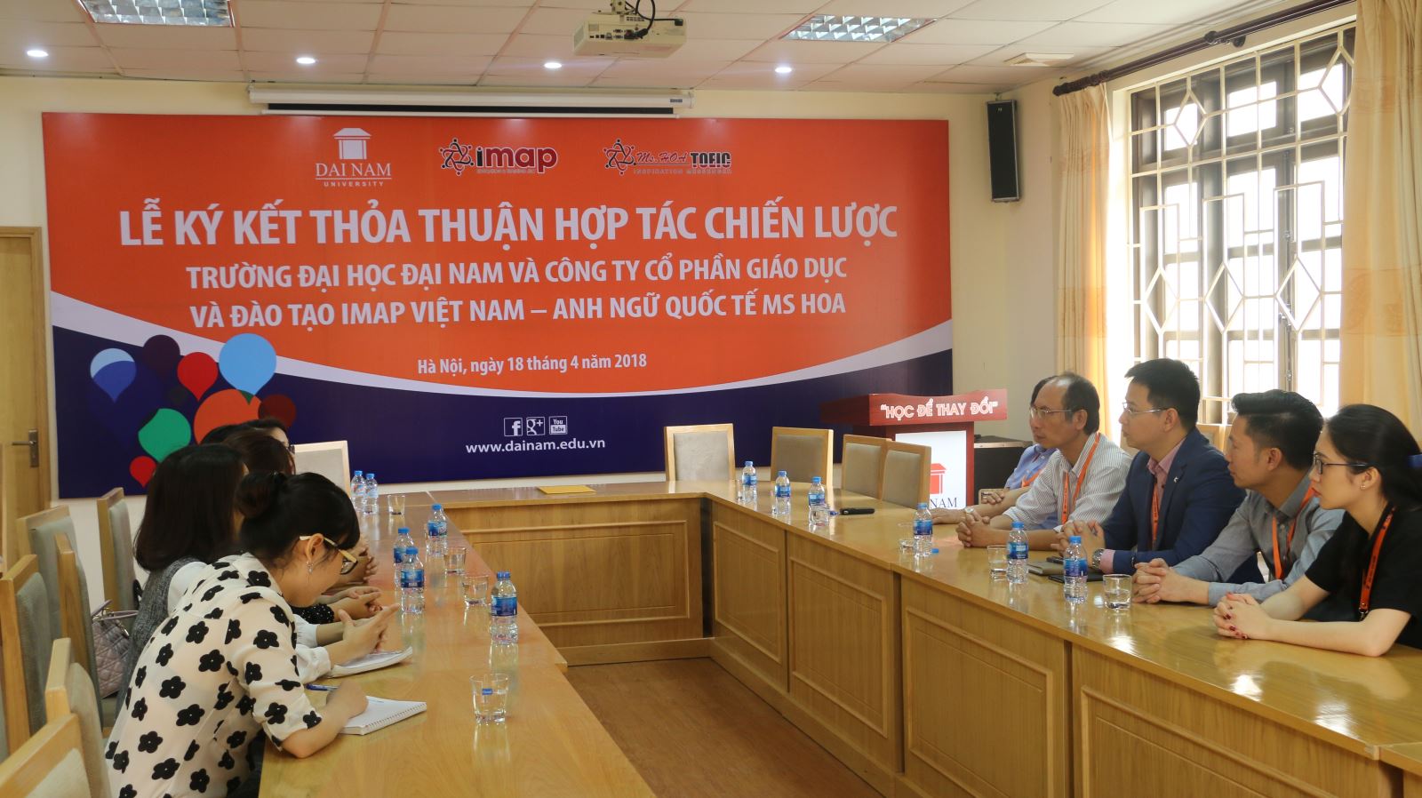 Thay mặt Công ty IMAP Việt Nam, Bà Nguyễn Thị Giang – Tổng giám đốc công ty gửi lời cảm ơn chân thành tới sự quan tâm hợp tác đào tạo Tiếng Anh TOEIC của ban lãnh đạo Đại học Đại Nam. Bà cũng hy vọng sự hợp tác giữa đôi bên sẽ thành công tốt đẹp, tận dụng được thế mạnh của mình cùng nhau phát triển, đóng góp nhiều hơn cho cộng đồng xã hội.