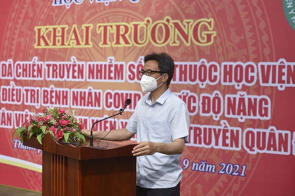 Phát biểu tại buổi lễ, Phó Thủ tướng Vũ Đức Đam nhấn mạnh mỗi một bệnh viện điều trị bệnh nhân COVID-19 được đưa vào hoạt động sẽ thêm hy vọng, thêm niềm tin giữ lại cuộc sống cho nhiều người, nhiều gia đình; trang bị thêm “vũ khí” cho lực lượng phòng, chống dịch.