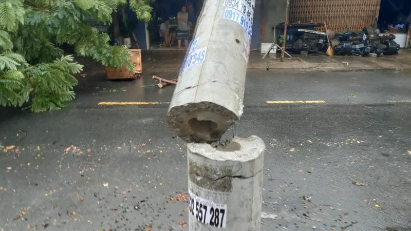"Nguyên nhân chính việc gãy cột điện là do ảnh hưởng của bão số 5 làm cây to ngã đè vào đường dây, tác động lực quá lớn kéo gãy cột", PC Đà Nẵng cho biết. "PC Đà Nẵng khẩn trương khắc phục sự cố, khôi phục cấp điện phục vụ nhân dân trên địa bàn".