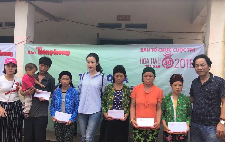 Trong chuyến đi, BTC cuộc thi Hoa hậu Việt Nam 2018 gồm Báo Tiền Phong và Công ty Sen Vàng ủng hộ 100 triệu đồng, Quỹ Thiện tâm của tập đoàn Vingroup ủng hộ 200 triệu đồng, nhãn hàng Amy Store ủng hộ 5 triệu đồng. Hoa hậu Mỹ Linh và Á hậu Thanh Tú cũng gửi những phần quà hỗ trợ thiết thực đến tận tay những hộ gia đình chịu thiệt hại nặng nề trong cơn lũ vừa qua.