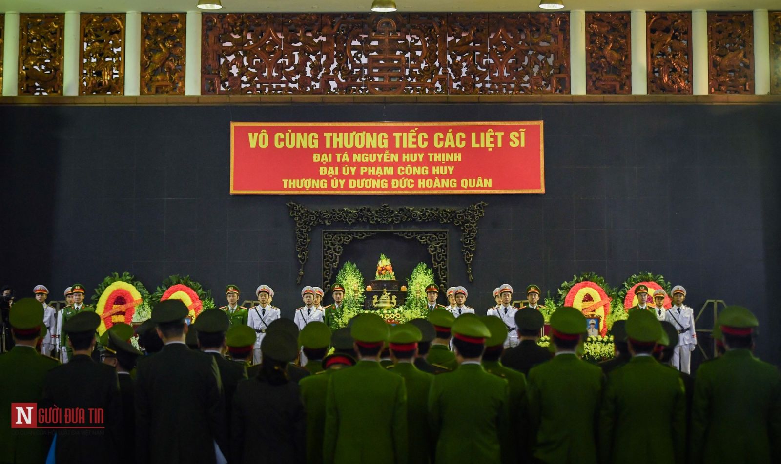 Sáng nay, Thủ tướng Chính phủ Nguyễn Xuân Phúc; Ủy viên Bộ Chính trị, Phó Thủ tướng Thường trực Chính phủ Trương Hòa Bình; Bộ trưởng Bộ Công an, Đại tướng Tô Lâm; Ủy viên Bộ Chính trị, Bí thư Trung ương Đảng, Trưởng Ban Dân vận Trung ương Trương Thị Mai; Ủy viên Bộ Chính trị, Bí thư Trung ương Đảng, Trưởng Ban Kinh tế Trung ương Nguyễn Văn Bình; Bí thư Trung ương Đảng, Chủ tịch Ủy ban Trung ương MTTQ Việt Nam Trần Thanh Mẫn cùng nhiều vị lãnh đạo Đảng, Nhà nước, các bộ ngành và TP. Hà Nội đã tới viếng 3 liệt sĩ công an.
