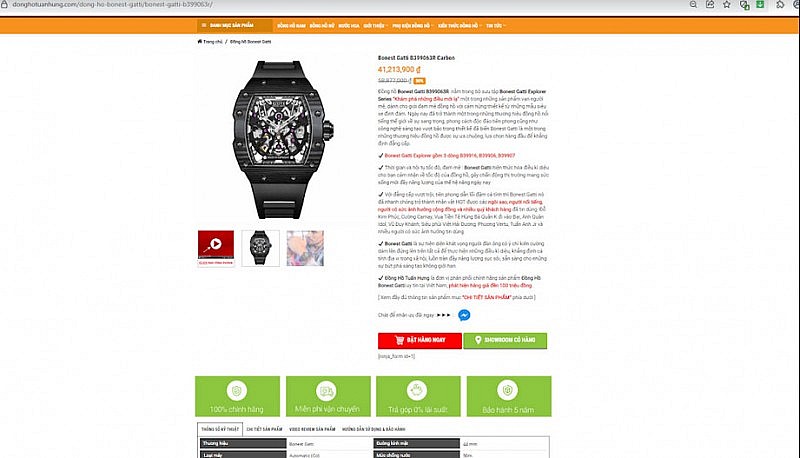 Ông Phạm Cao Sơn cho biết thêm, đối với nội dung quảng cáo trên trang web https://donghotuanhung.com/, qua rà soát, công ty nhận thấy công ty sử dụng từ “sản sinh” là chưa đầy đủ mô tả. Thực tế Bonest Gatti có lịch sử thương hiệu từ Đức được sản xuất theo công nghệ và tiêu chuẩn Đức với linh kiện máy móc được nhập khẩu từ Đức, Nhật Bản... “Ngay sau khi tiếp nhận thông tin Báo Công Thương phản ánh, chúng tôi đã kịp thời điều chỉnh và có hình thức xử lý đối với bộ phận truyền thông và kỹ thuật viên công ty”, ông Phạm Cao Sơn nói.