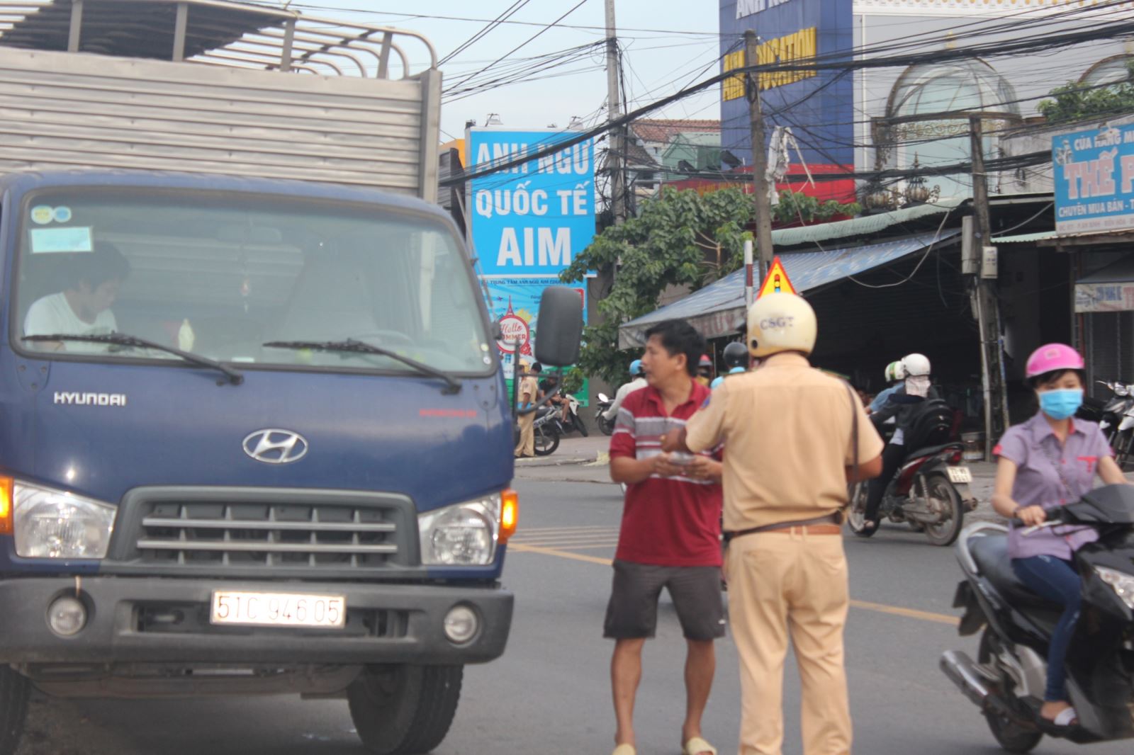 Theo ghi nhận, tuyến đường này luôn có một tổ TTKS – XLVP túc trực hàng ngày vì đây là tuyến đường dẫn vào KCN và kho tân cảng. Vào chiều ngày 22/6/2018, chúng tôi ghi nhận tổ TTKS – XLVP gồm các đồng chí Thiếu tá Nguyễn Tiến Trọng làm tổ trưởng, Thiếu tá Trần Văn Đức làm tổ phó, 2 Đại úy tổ viên là Nguyễn Đức Toàn và Đinh Văn Thiện đang làm nhiệm vụ.