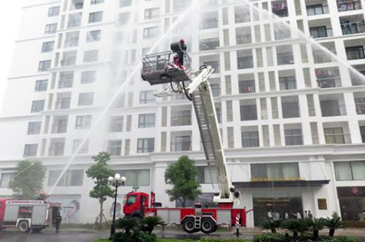 Xe chữa cháy trên cao lắp đặt lăng phun chữa cháy có độ cao làm việc tối đa không nhỏ hơn 50m phải lắp thêm bơm tăng áp.
