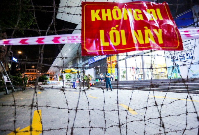 Sau khi ghi nhận 1 trường hợp dương tính với SARS-CoV-2, tối 19/8, lực lượng chức năng đã tiến hành dựng hàng rào, lập chốt tại sảnh chung cư Artemis số 3 Lê Trọng Tấn (phường Phương Mai, quận Thanh Xuân). Theo đó, nơi đây tạm thời "nội bất xuất, ngoại bất nhập" để thực hiện các biện pháp liên quan.