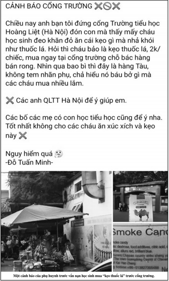 Theo tìm hiểu của PV ĐS&PL, khoảng đầu tháng Mười, một số phụ huynh phản án có tình trạng "kẹo thuốc lá" bày bán ở một số điểm trường tại địa bàn quận Hoàng Mai. Các chủ hàng rong sau đó đã được công an nhắc nhở và không nhập bán loại kẹo này. Tuy nhiên, không loại trừ một số cơ sở vì lợi nhuận vẫn lén lút kinh doanh.