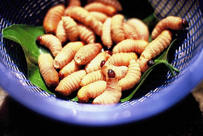 Đây cũng là món ăn sống, người ta còn gọi vui là món “đuông lội sông” do những con đuông béo mẫm, mình tròn trịa bơi lội trong bát nước mắm ớt cay. Do ăn sống nên nhiều vị khách không đủ can đảm để thử, tuy nhiên món ăn lại mang hàm lượng dinh dưỡng cao. Gắp lấy một con đuông đang bò luậy nguậy cho vào miệng, nhai vỡ một cách từ từ để các dinh dưỡng trong mình đuông lan tỏa trong miệng bạn sẽ cảm nhận được vị ngọt bùi, vừa giống lòng đỏ trứng vừa giống pho mát rất thú vị.