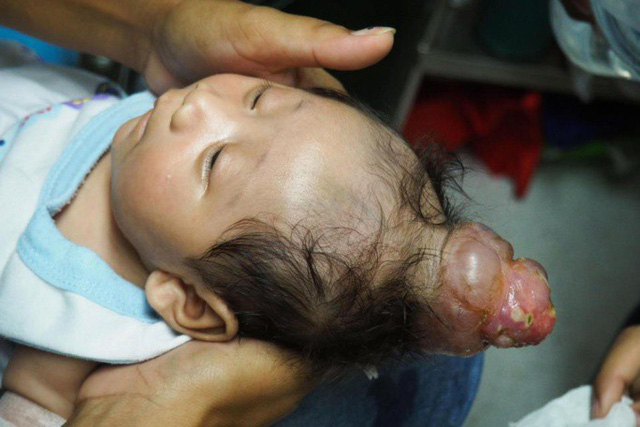 Được biết, chiếc sừng trên đầu bé Nhel là do mắc chứng thoát vị não bẩm sinh. Đây là một dị tật hiếm gặp, khiến đầu của cậu bé trông như mọc sừng và não tràn ra ngoài.