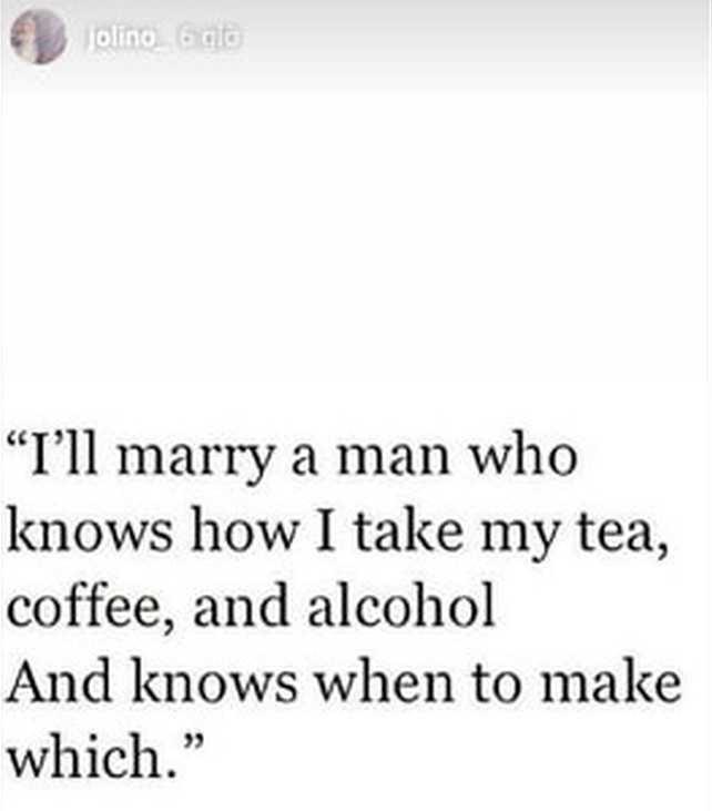 Đặc biệt, mới đây, Thoại Liên còn bất ngờ chia sẻ quan điểm về người mình muốn lấy làm chồng qua một đoạn quote ngắn: "I'll marry a man who knows how I take my tea, coffee, and alcohol. And knows when to take which" (Tạm dịch: Tôi sẽ cưới một người đàn ông biết tôi uống trà, cà phê và rượu như thế nào. Và biết khi nào thì tôi uống thứ gì).