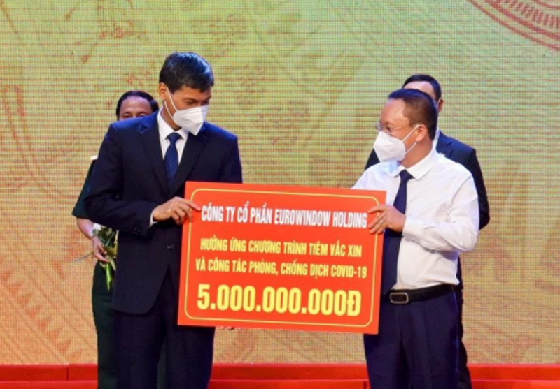 Trong khuôn khổ chương trình “Hà Nội chung tay hành động đẩy lùi COVID-19” diễn ra tại Cung văn hóa Hữu nghị Việt Xô tối 19/6, cùng với nhiều tổ chức, cá nhân và doanh nghiệp trên địa bàn thủ đô, Eurowindow Holding đã đóng góp 5 tỷ đồng cho Quỹ vaccine của thành phố. Hành động thiết thực và kịp thời này được thực hiện ngay sau khi UBND, Ủy ban Mặt trận Tổ quốc Việt Nam thành phố Hà Nội kêu gọi các tổ chức, doanh nghiệp, đơn vị, cá nhân và toàn thể nhân dân Thủ đô, những tấm lòng, những trái tim kết nối, sẻ chia yêu thương, cùng lan tỏa tinh thần “tương thân, tương ái”, chung tay ủng hộ, hỗ trợ chương trình tiêm vắc xin phòng COVID-19 của thành phố Hà Nội.