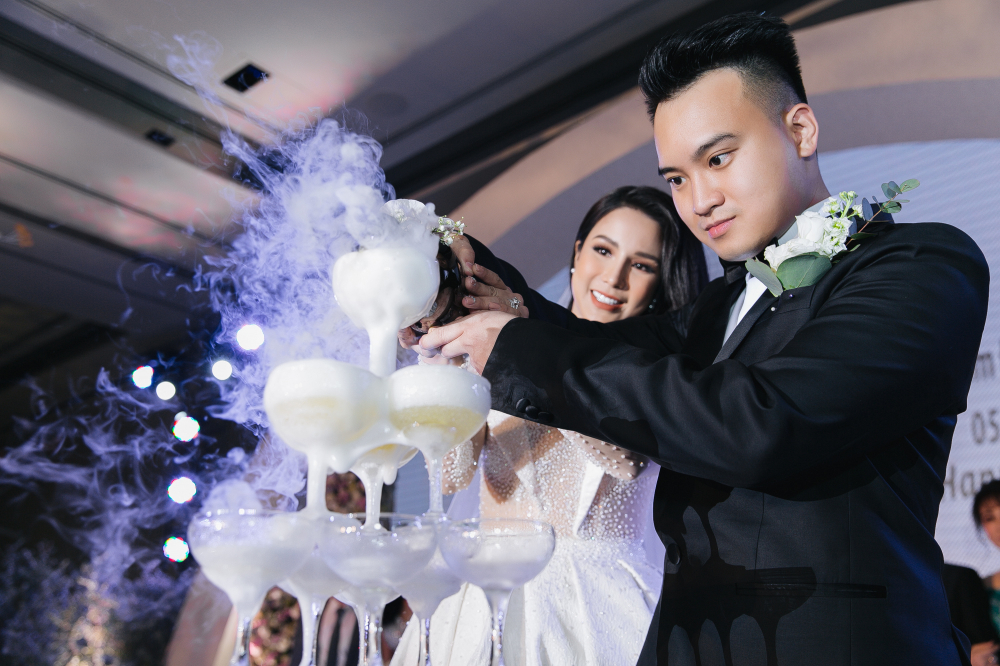 Sau lễ gia tiên tại nhà cô dâu sáng 5/5, tối cùng ngày, tiệc cưới của Diệp Lâm Anh và chồng thiếu gia Đức Phạm được tổ chức tại một khách sạn 5 sao ở trung tâm TP.HCM.