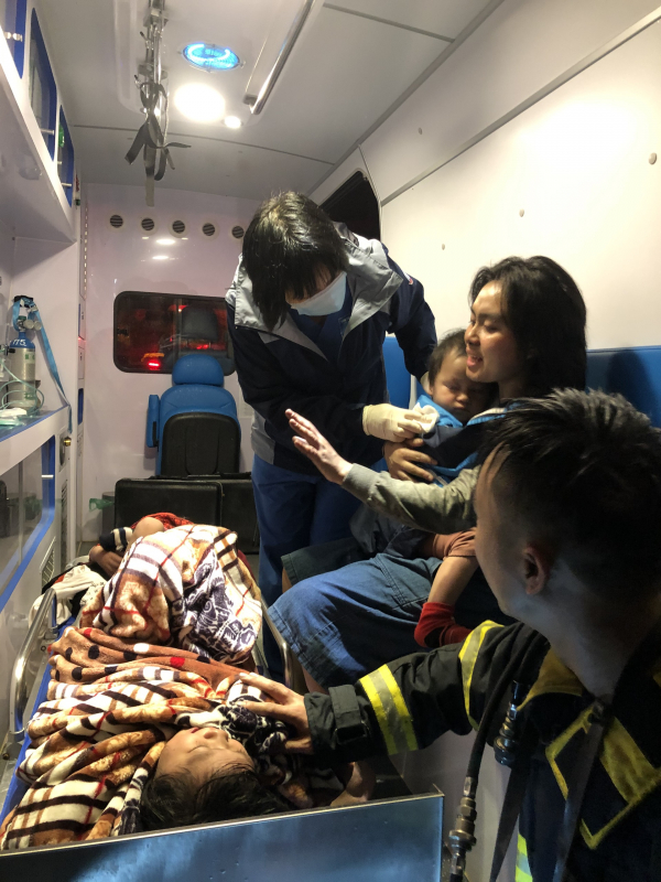 Khi nắm được thông tin, các mũi cứu hoả vừa triển khai tích cực chữa cháy vừa lao vào khu vực có 3 người đang mắc kẹt cõng các nạn nhân ra ngoài an toàn.