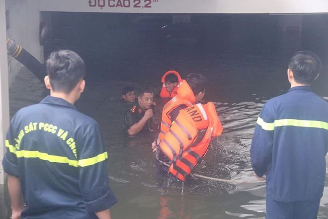 Tại hiện trường, 2 xe chuyên dụng, 2 máy bơm chuyên dụng và khoảng một tiểu đội cảnh sát PCCC đã làm việc tốc lực từ 9h sáng cùng ngày để nỗ lực hạ mực nước trong hầm để xe tại chung cư này, nhằm giải cứu các phương tiện bị nhấn chìm tại đây. Có mặt tại hiện trường, nhiều chủ sở hữu phương tiện và người dân hiếu kỳ cũng theo dõi lực lượng chức năng giải cứu phương tiện.