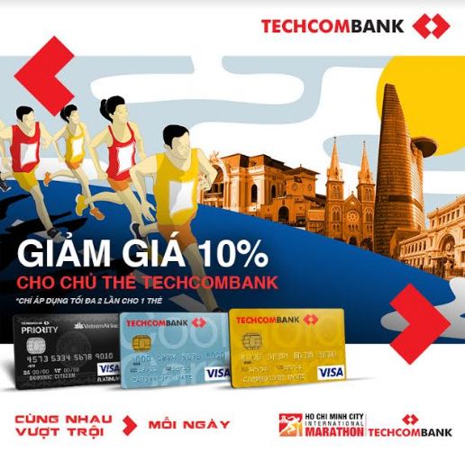 Tất cả các chủ thẻ Techcombank sẽ được áp dụng mức giảm ưu đãi là 10% phí đăng ký tham gia giải chạy từ khi mở bán vé đến khi Ban tổ chức ngừng bán vé. Với thông điệp “Cùng nhau vượt trội hơn mỗi ngày” (Be Greater Together), Giải Marathon Quốc tế TP Hồ Chí Minh Techcombank diễn ra vào ngày 2.12. 2018 nhằm tạo điều kiện để mỗi người dân Việt Nam nâng tầm sức khỏe và chất lượng cuộc sống, thông qua việc kết nối cộng đồng, rèn luyện tinh thần tập luyện thể dục thể thao, xây dựng lối sống và môi trường văn hóa lành mạnh để hướng đến những thành công lớn hơn trong tương lai. Năm 2017, Giải Marathon Quốc Tế Thành Phố Hồ Chí Minh Techcombank đã chào đón gần 5.000 vận động viên đến từ 44 quốc gia và là giải chạy Marathon quy mô nhất từng được tổ chức tại Việt Nam.