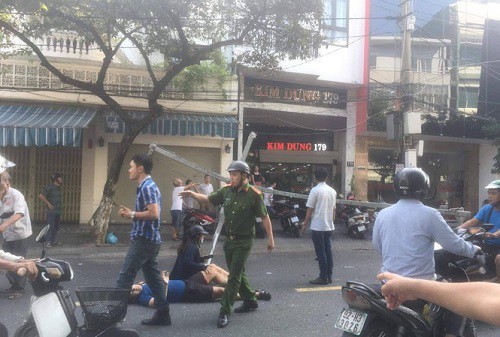 Theo lời các công nhân thi công tòa nhà, giàn giáo di động nói trên dài 4 m, nặng khoảng 50 kg đang được họ lắp đặt để thay kính cường lực mặt tiền của tòa nhà. Giàn giáo rơi từ trên cao còn làm đứt dây điện, gây mất điện nhiều giờ ở tuyến đường Triệu Nữ Vương.
