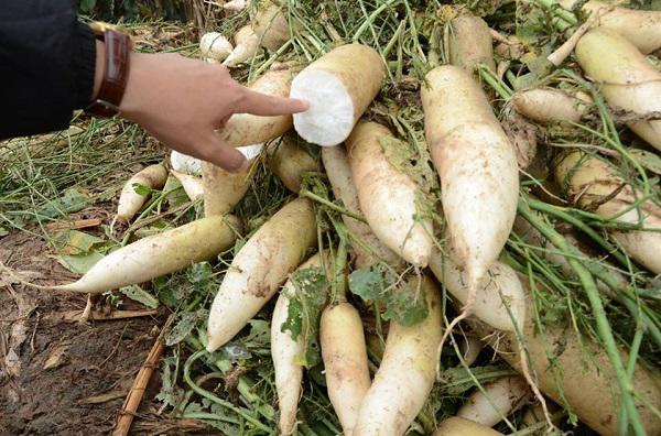 Chị Tuyết một thương lái và cũng là một người nông dân tại đây cho biết, mỗi sào củ cải trắng người dân phải chi đến 3,5 triệu đồng để chăm bón, giống. Tuy nhiên do lượng cung ra thị trường quá nhiều dẫn đến không bán được, hoặc có bán giá cũng quá rẻ nên đã phải phá bỏ để lấy đất trồng loại rau màu khác.
